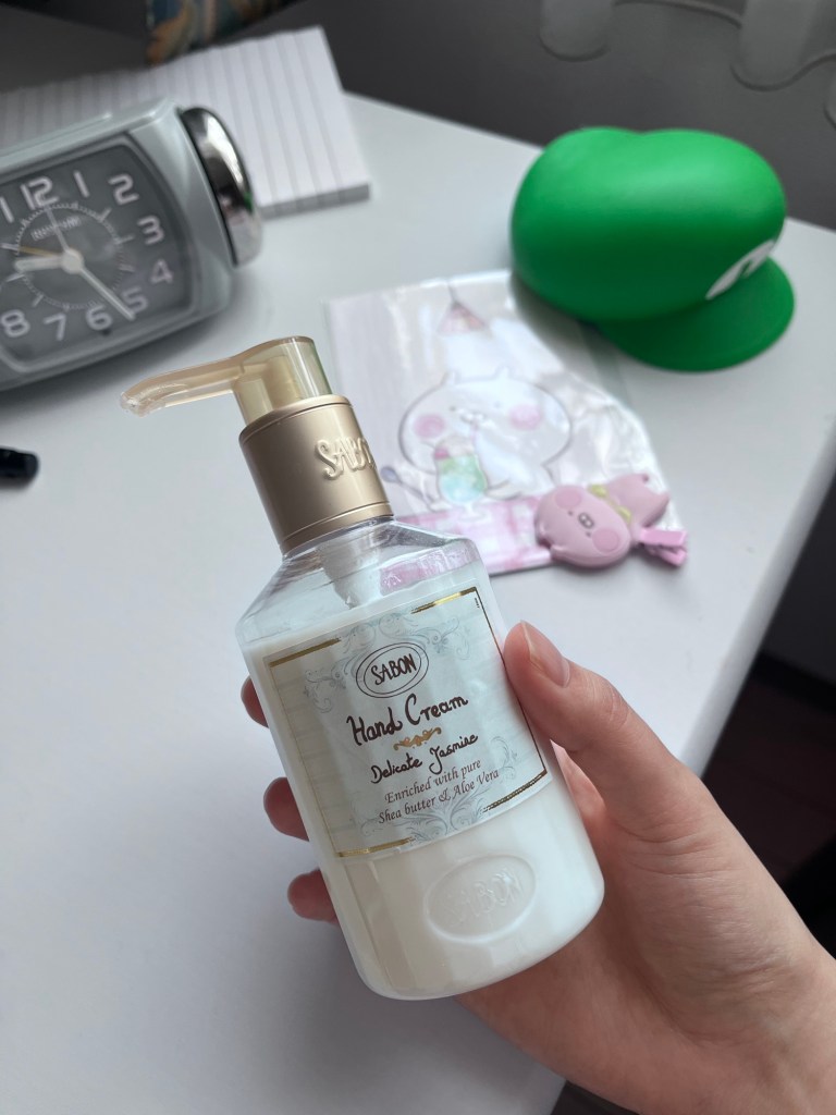 私は起き抜けの状態でハンドクリームを手〜腕に塗り、